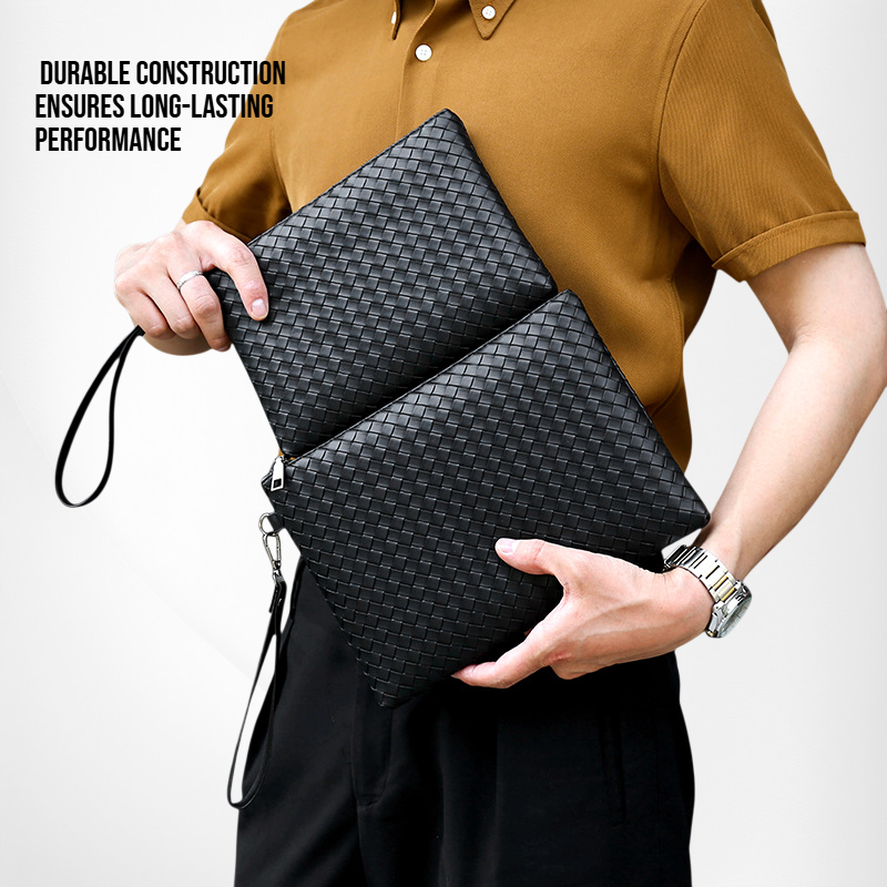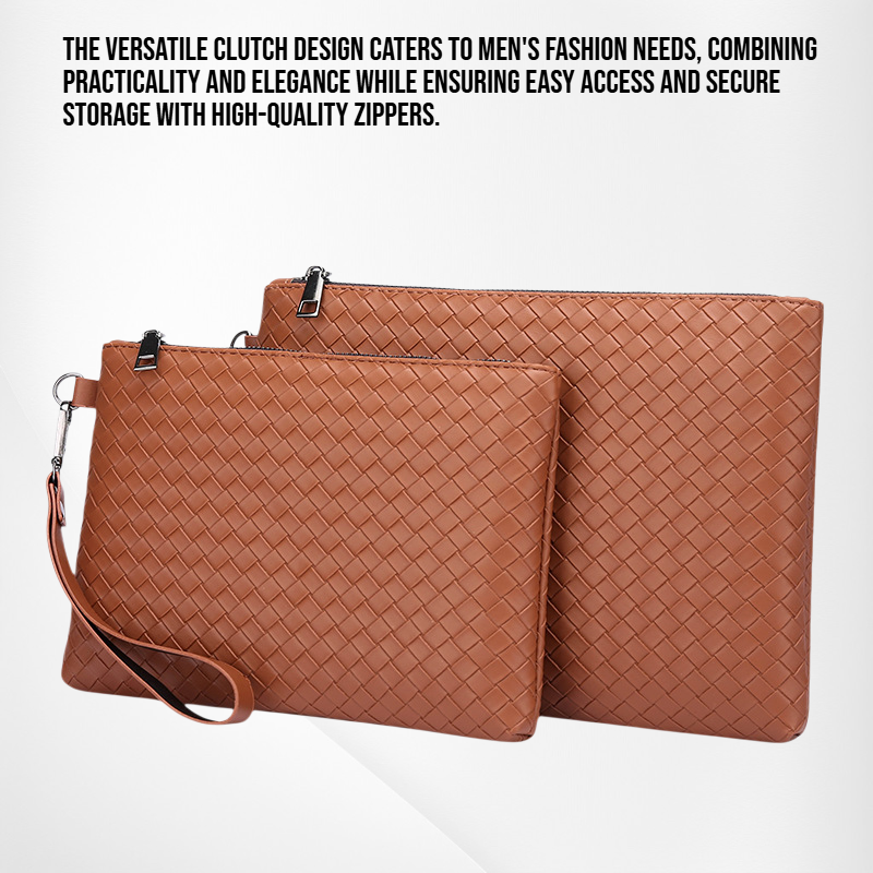 ● The versatile clutch design caters to men's fashion needs, combining practicality and elegance while ensuring easy access and secure storage with high-quality zippers.